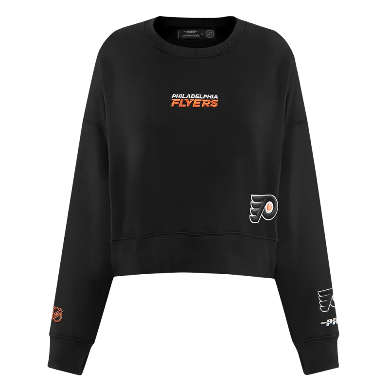 NHL PHILADELPHIA FLYERS VARSITY BLUES WOMEN’S CREWNECK (BLACK)