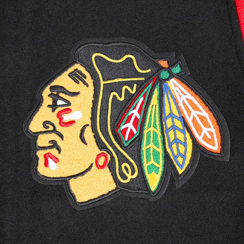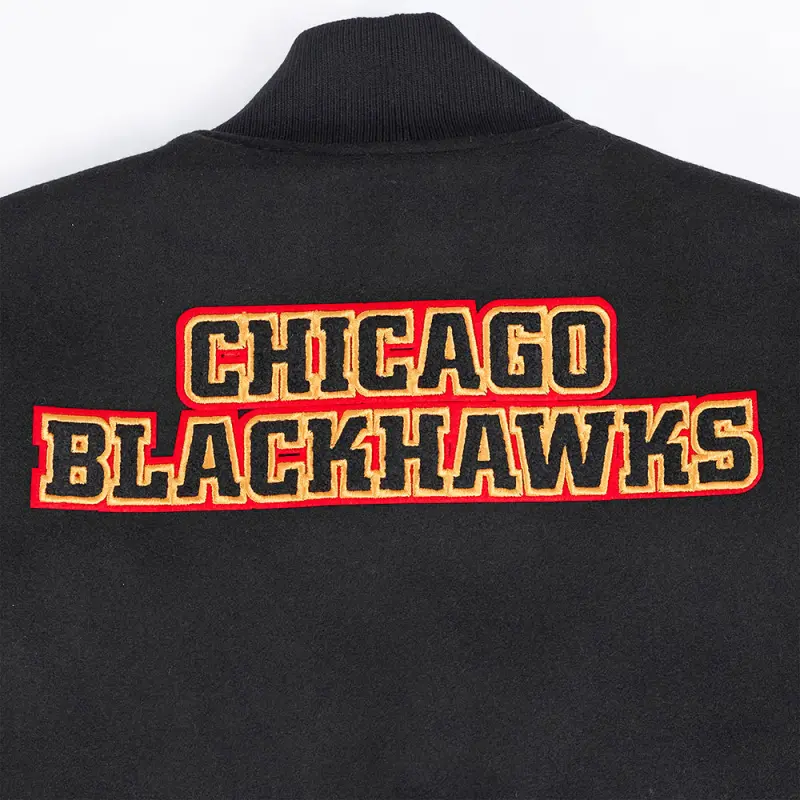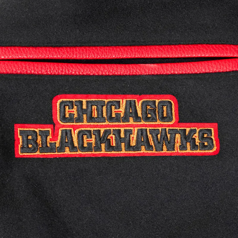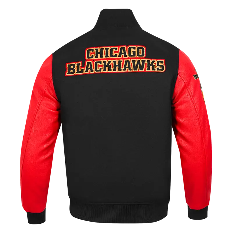 NHL CHICAGO BLACKHAWKS CLASSIC MEN’S WOOL VARSITY JACKET (BLACK\/RED)
