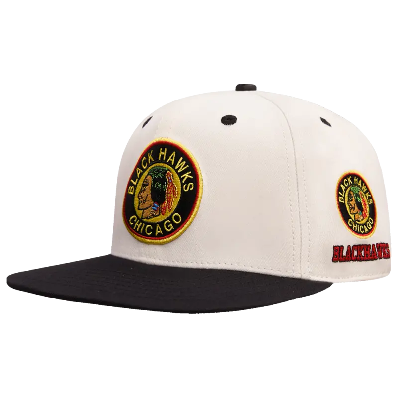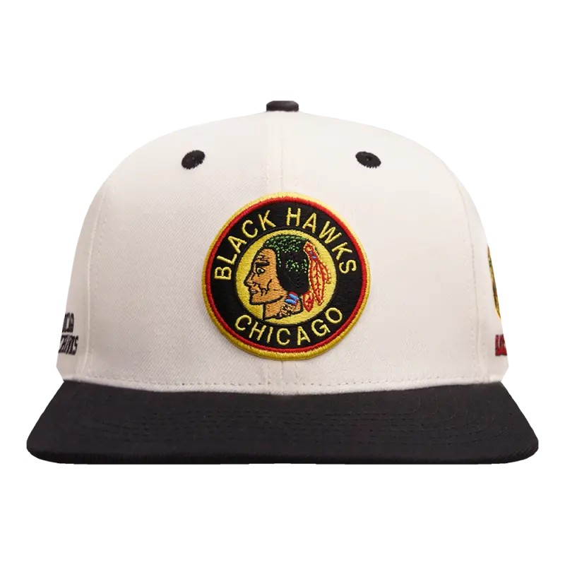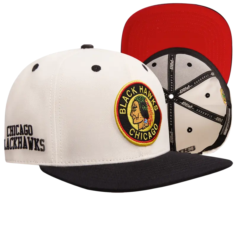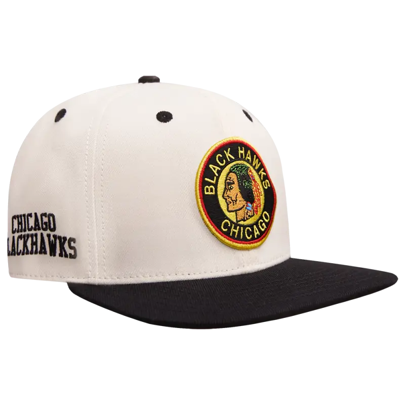 The Pro Standard Premium NHL Chicago Blackhawks Retro Classic Unisex Primary Logo Wool Snapback (Eggshell)