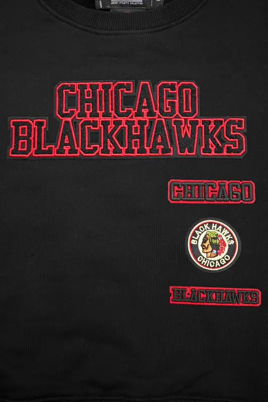 NHL CHICAGO BLACKHAWKS RETRO CLASSIC WOMEN’S RIB CREWNECK (BLACK\/RED\/BLACK)