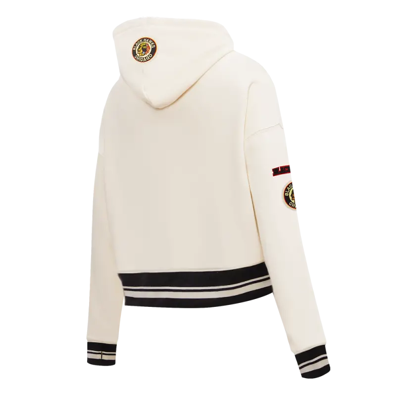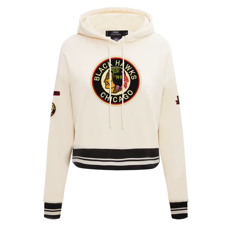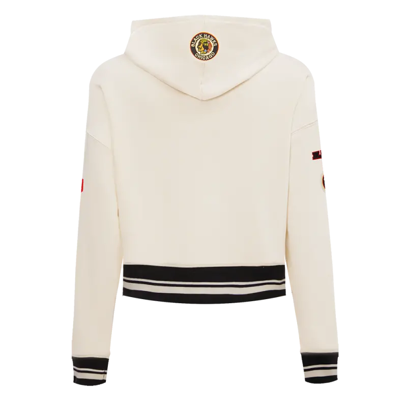 Home / Shop / Chicago Blackhawks / NHL CHICAGO BLACKHAWKS RETRO CLASSIC WOMEN’S RIB CROPPED PULLOVER HOODIE (EGGSHELL\/ BLACK)