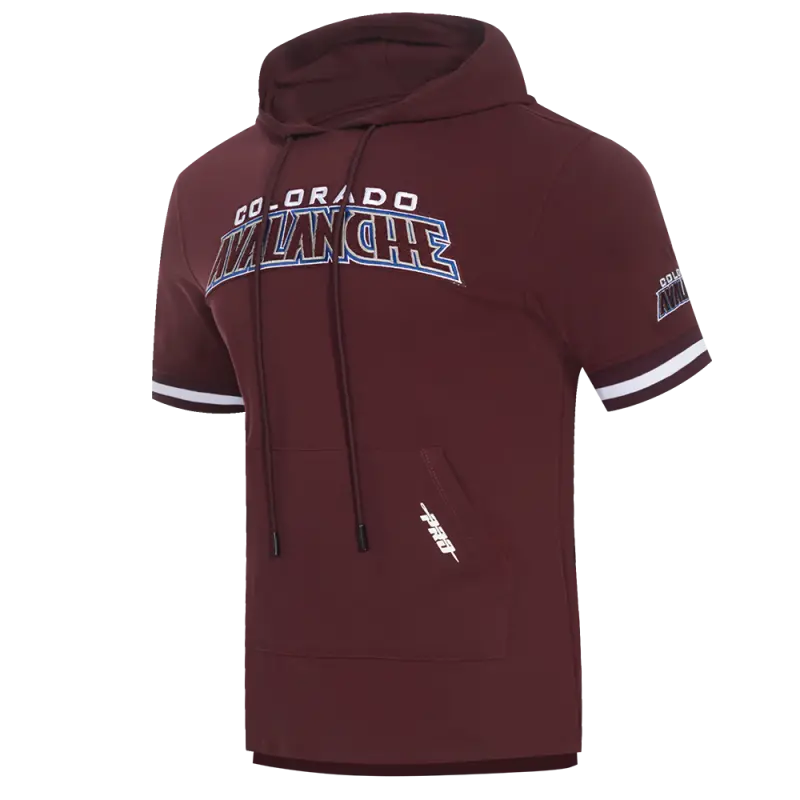 NHL COLORADO AVALANCHE CLASSIC CHENILLE MEN’S SHORT SLEEVE PULLOVER HOODIE (WINE)
