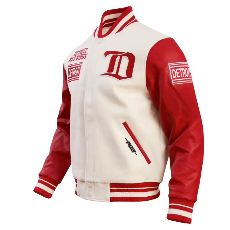 Home / Shop / Detroit Red Wings / NHL DETROIT RED WINGS RETRO CLASSIC MEN’S RIB WOOL VARSITY JACKET (EGGSHELL\/ RED)