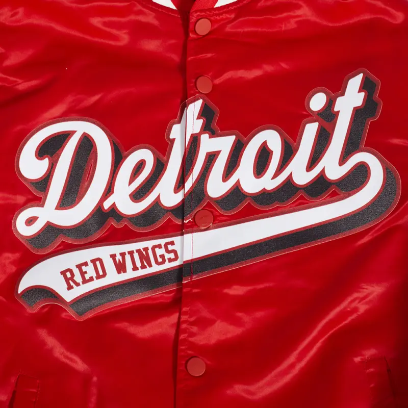 NHL DETROIT RED WINGS SCRIPT TAIL MEN’S SATIN JACKET (RED)