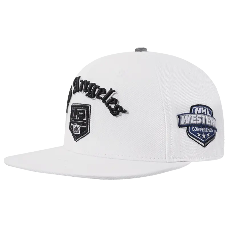 NHL LOS ANGELES KINGS OLD ENGLISH UNISEX 6 PANEL SNAPBACK HAT (WHITE)