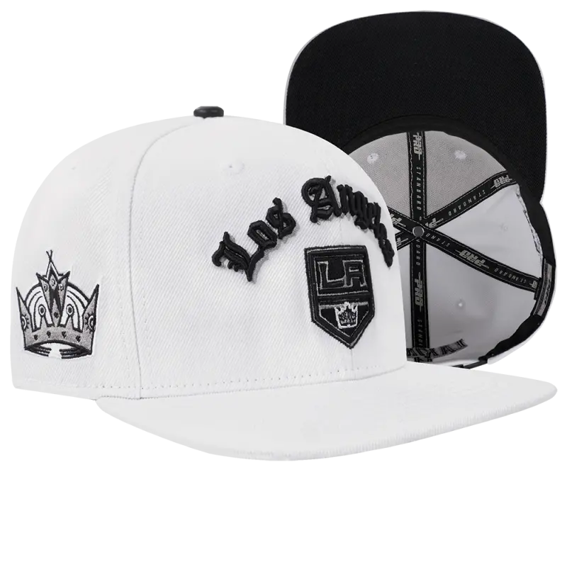 Home / Shop / Headwear / NHL LOS ANGELES KINGS OLD ENGLISH UNISEX 6 PANEL SNAPBACK HAT (WHITE)