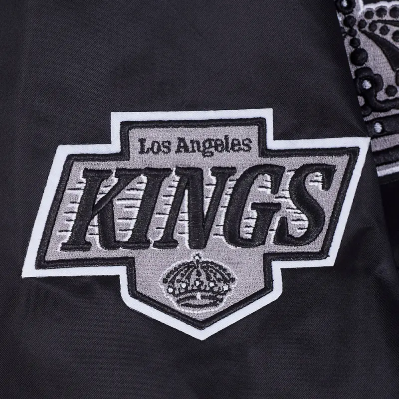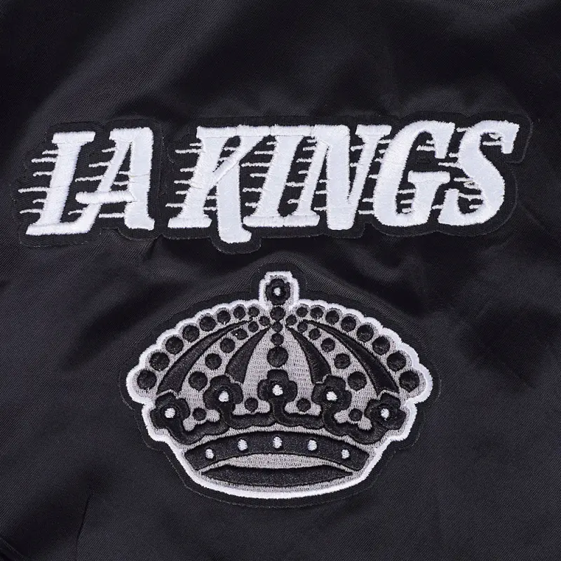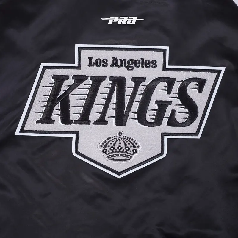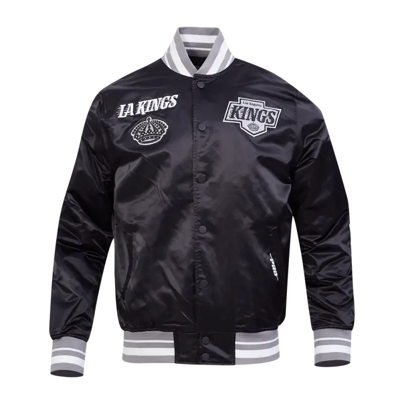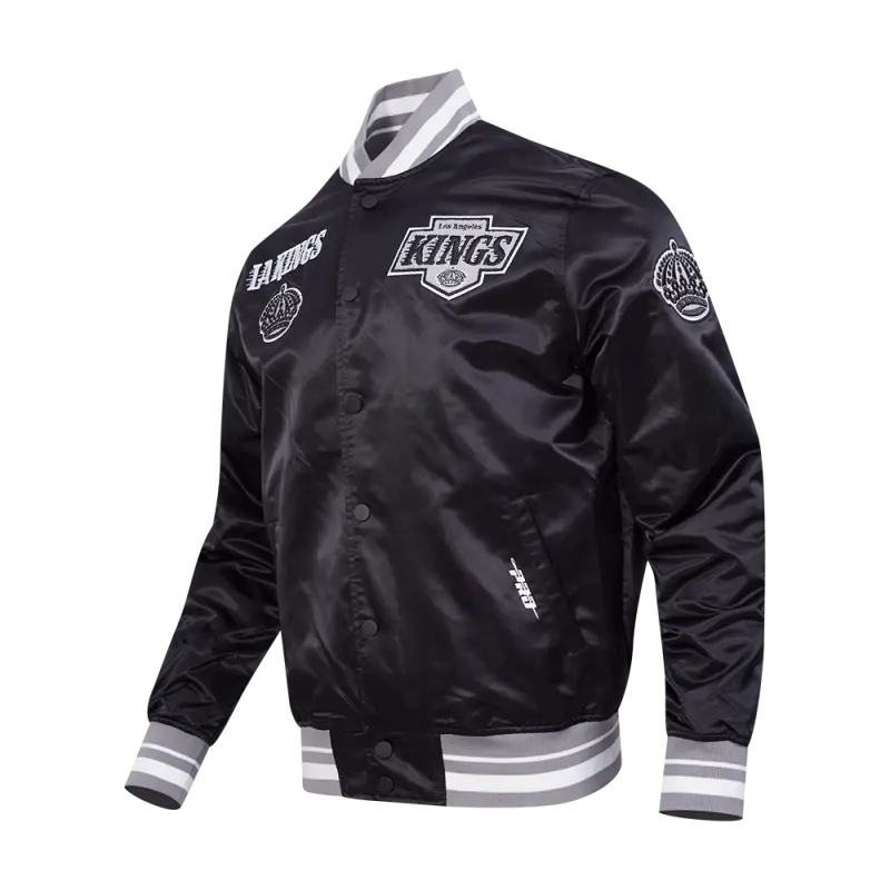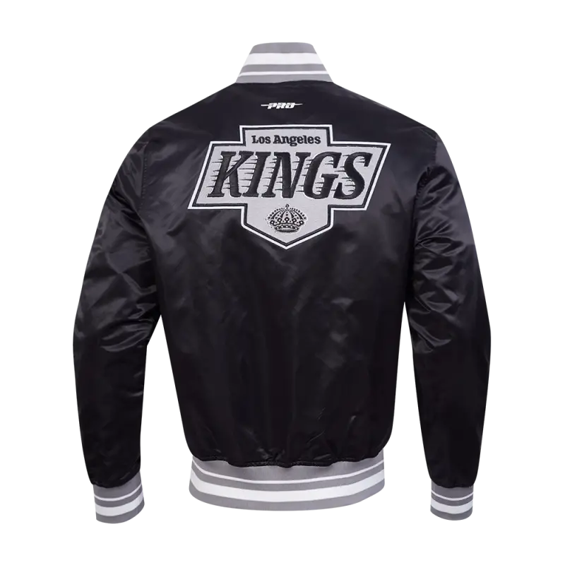 The Pro Standard Premium NHL Los Angeles Kings Retro Classic Men’s Rib Satin Jacket (Black/Gray)