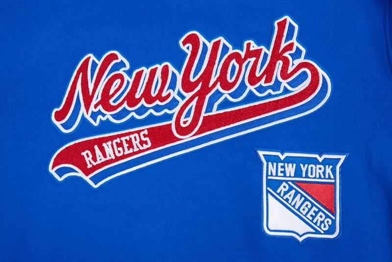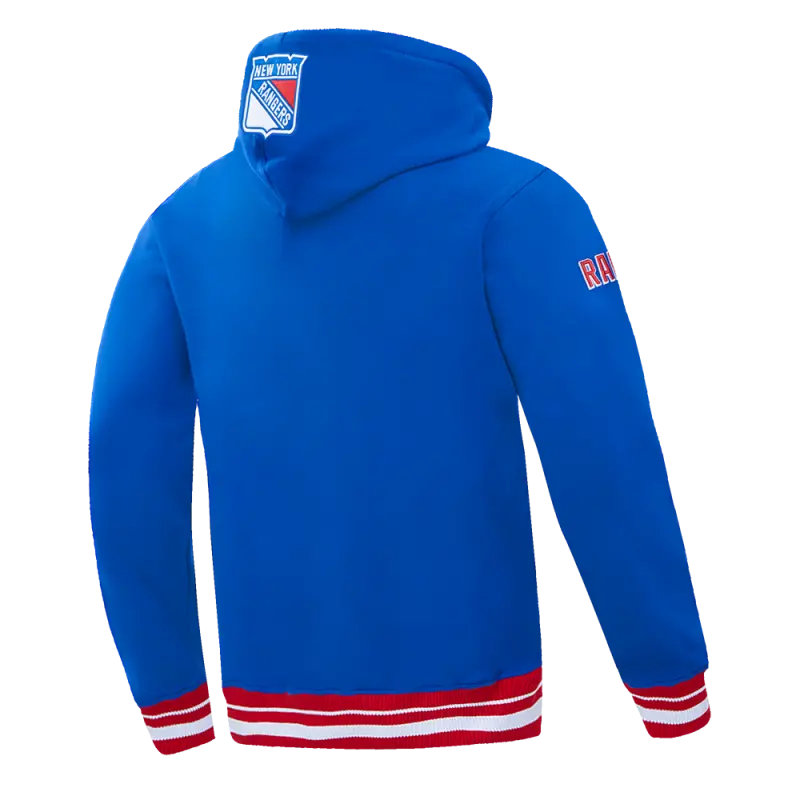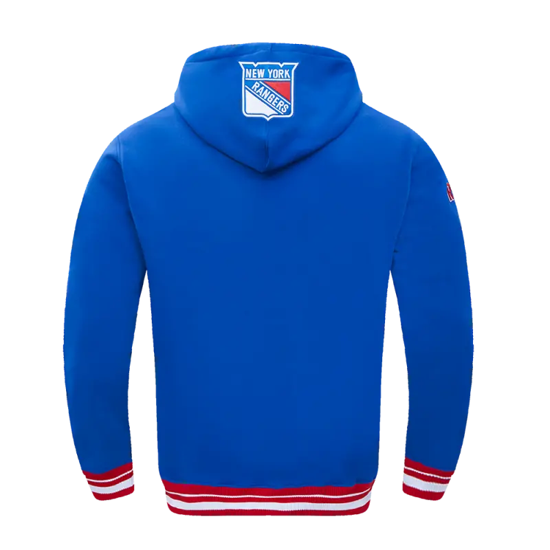 Home / Shop / Men / NHL NEW YORK RANGERS SCRIPT TAIL MEN’S RIB FLEECE PULLOVER HOODIE (ROYAL BLUE\/RED)