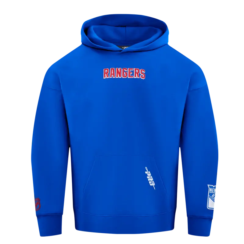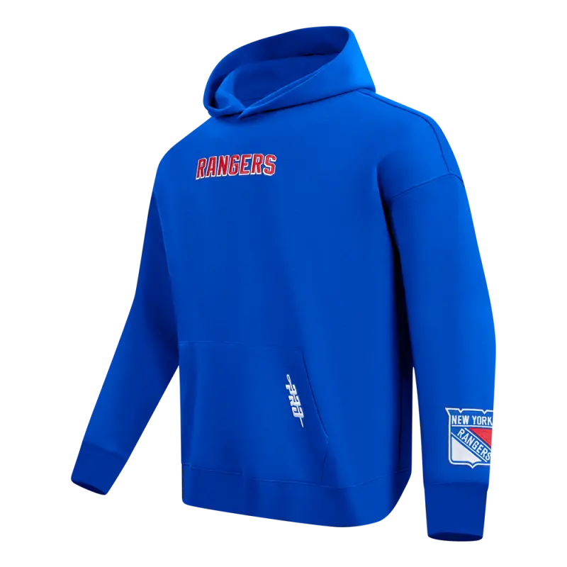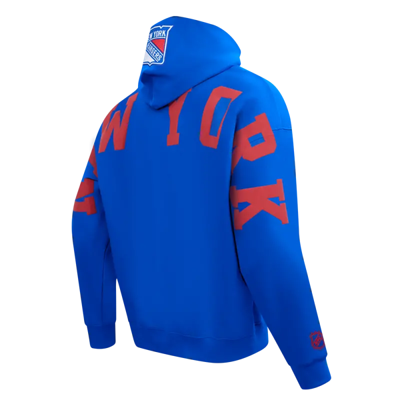 NHL NEW YORK RANGERS WINGSPAN MEN’S DROP SHOULDER FLEECE PULLOVER HOODIE (ROYAL BLUE)