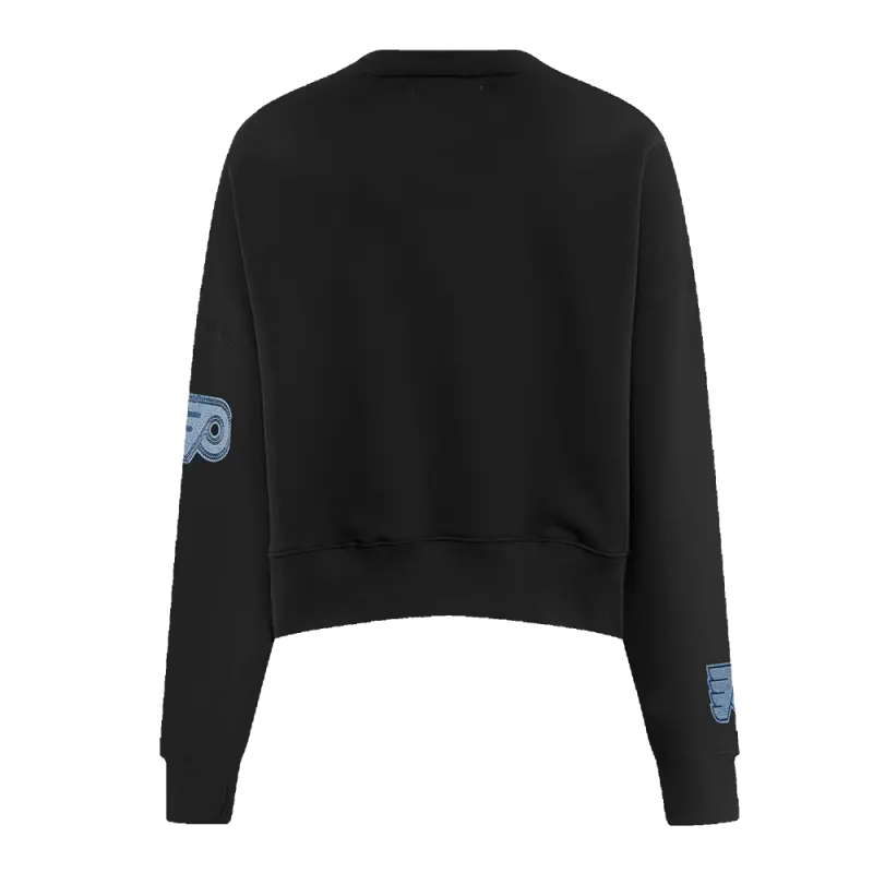 NHL PHILADELPHIA FLYERS VARSITY BLUES WOMEN’S CREWNECK (BLACK)