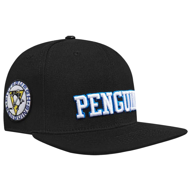 The Pro Standard Premium NHL Pittsburgh Penguins Retro Classic Unisex Wordmark Logo Wool Snapbac (Black)