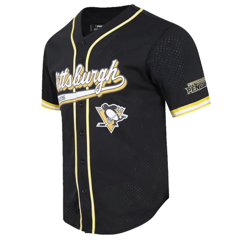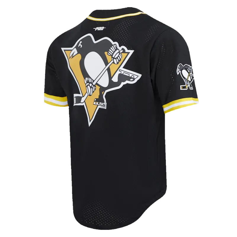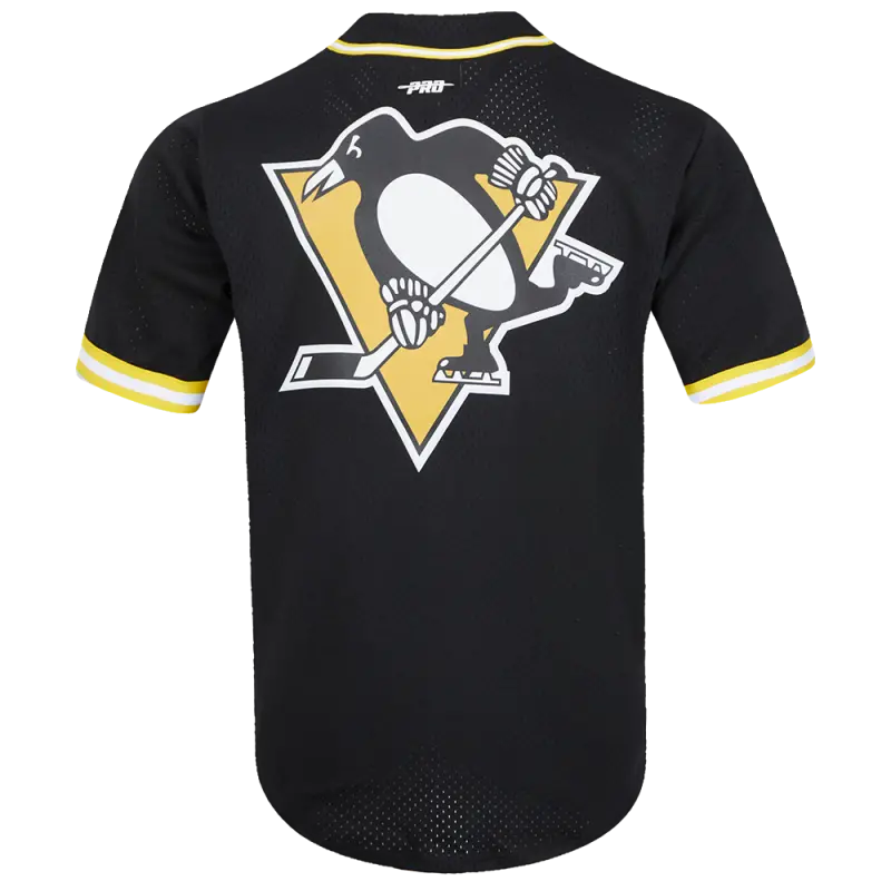Home / Shop / Men / NHL PITTSBURGH PENGUINS SCRIPT TAIL MEN’S MESH BUTTON DOWN SHIRT (BLACK\/YELLOW)