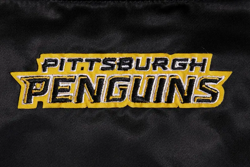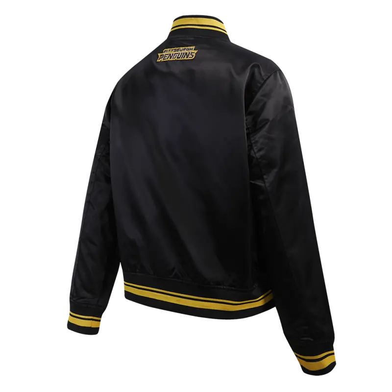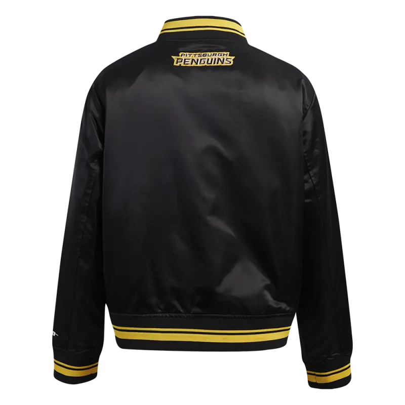 NHL PITTSBURGH PENGUINS SCRIPT TAIL WOMEN’S SATIN JACKET (BLACK\/YELLOW)