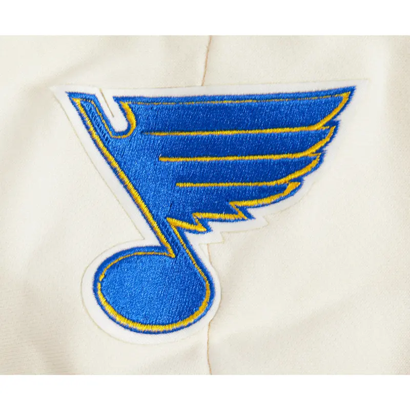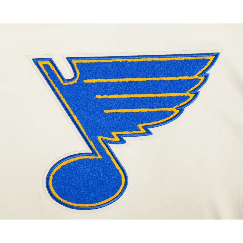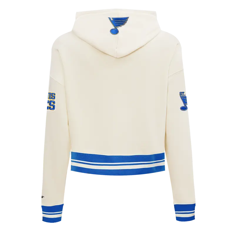 The Pro Standard Premium NHL St. Louis Blues Retro Classic WoMen’s Rib Cropped PO Hoodie (Eggshell/Royal Blue)