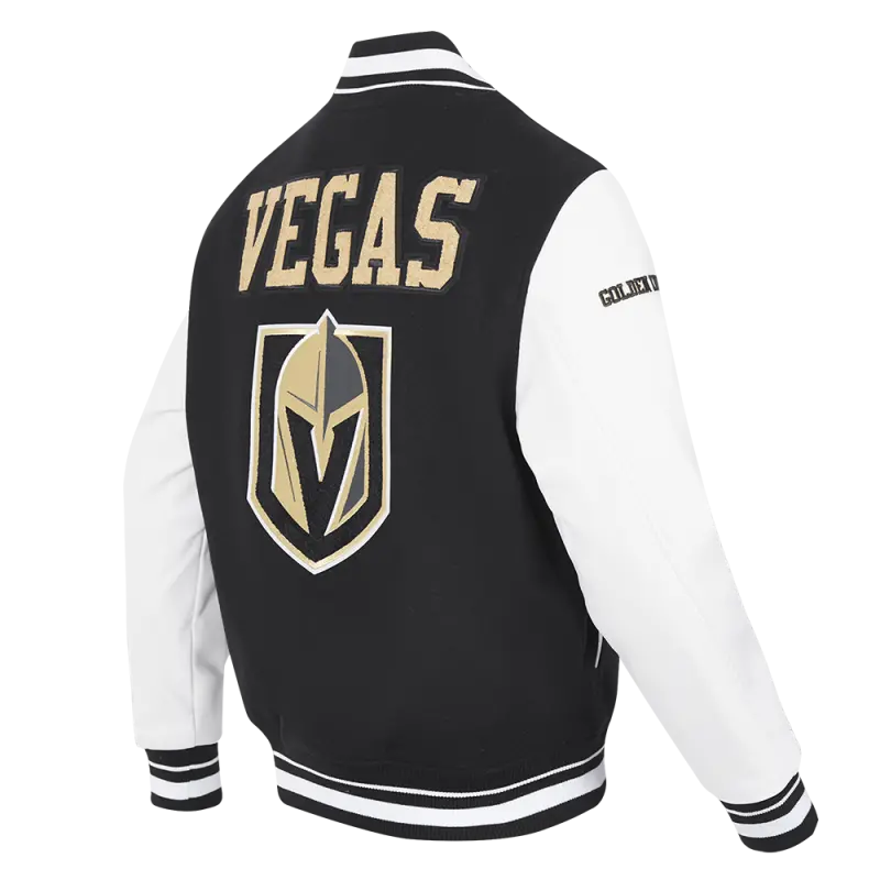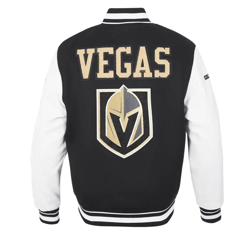 NHL VEGAS GOLDEN KNIGHTS RETRO CLASSIC MEN’S RIB WOOL VARSITY JACKET (BLACK\/WHITE)