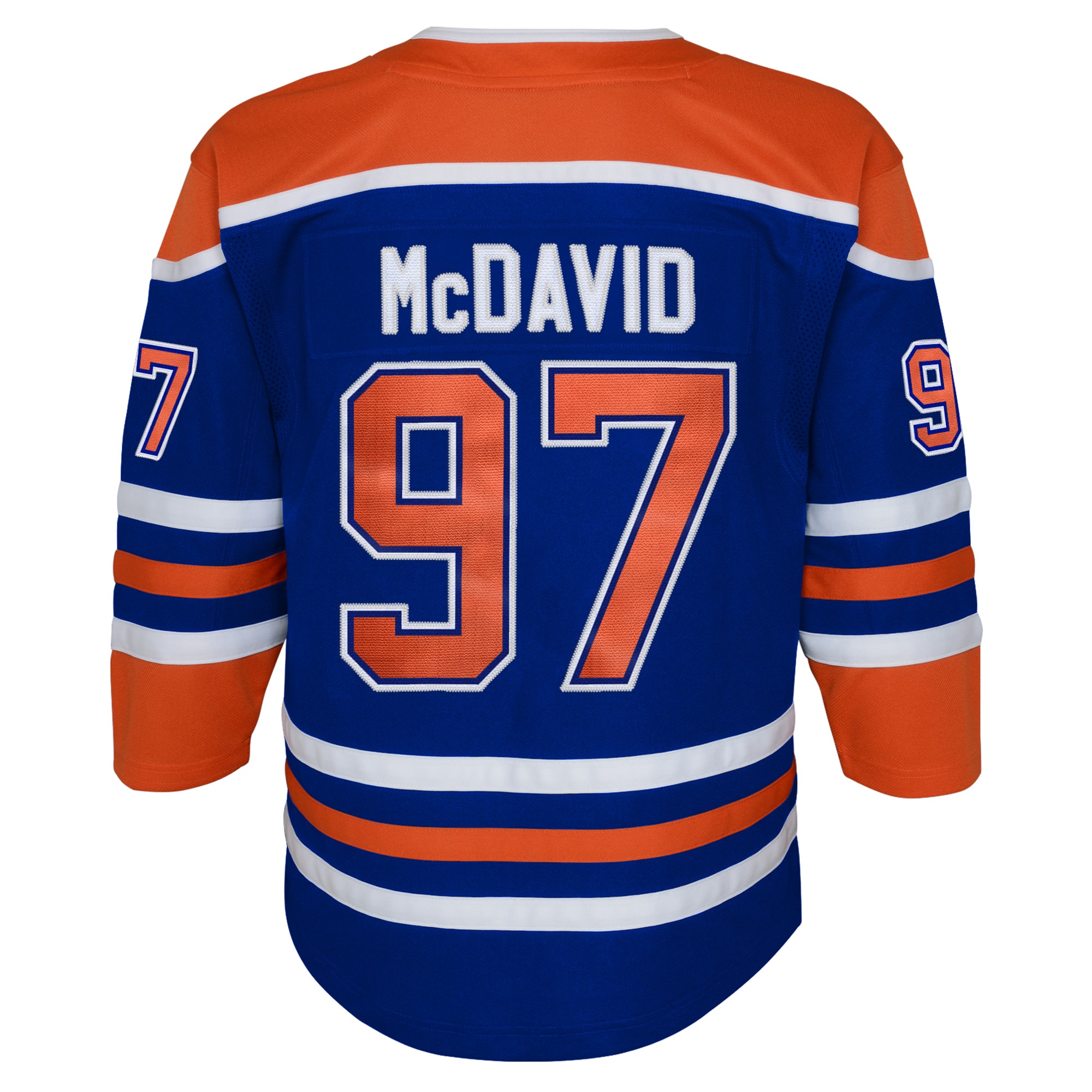 • This Connor McDavid Edmonton Oilers Home Premier Player Jersey is a spirited piece to have for game day. Printed Edmonton Oilers graphics match those worn by players on the ice, making your kiddo look like a member of their favorite team. Everyone will know you're raising your youngster to be a die-hard fan when they sport this Edmonton Oilers jersey.